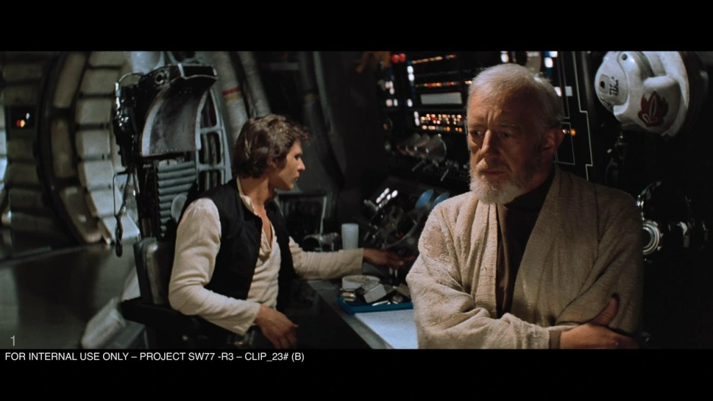 What’s interesting is that these screenshots, from July, consisted of clips from the ’77 release and the other two sequels as internal documents. The clips put the 4K UHD/Disney+ versions to shame in terms of both detail and color. When compared to a project like 4K77 or Despecialized or other fan editions, you can visually see that the clips have fine detail simply unavailable to the average restorer. The cropping and damage were also notably different, showing they are not just fan doctored from pre-existing fan projects. These clips were taken from high-quality masters. Not many of these original theatrical prints exist, so this print/ BFI has to be the one Lucasfilm is using.