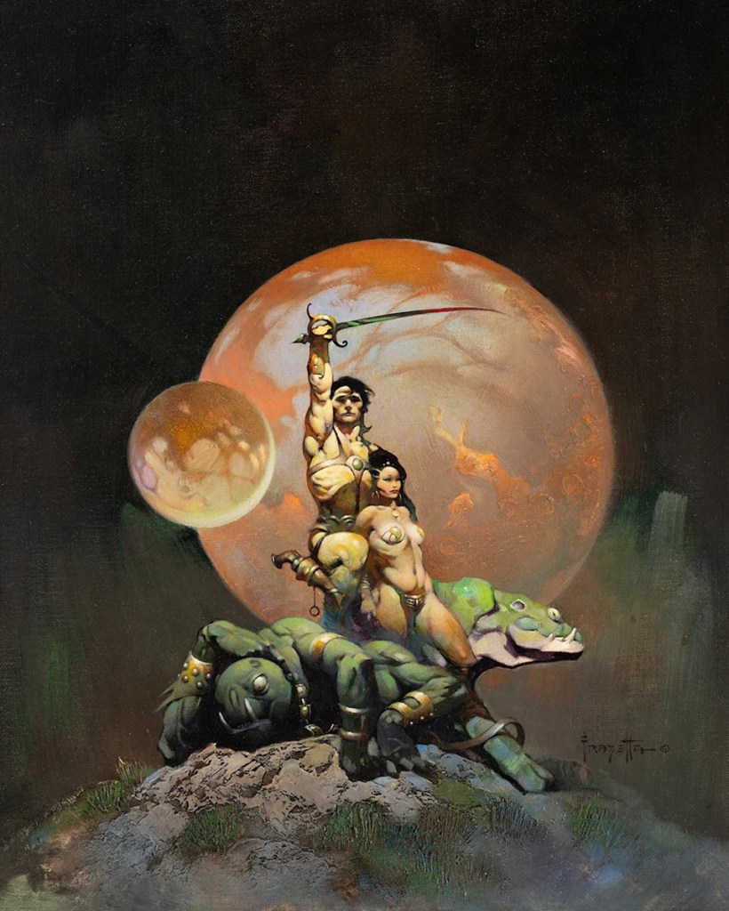 Among the pieces are Frazetta’s cover for A Princess of Mars (1970); Rockwell’s cover for The Saturday Evening Post, “Age of Romance”; an unpublished Potter drawing titled “Mouse with a Spinning Wheel” (1890); “The Duel on the Beach,” a Wyeth illustration for Ladies’ Home Journal (1926); and Ernie Barnes’ “The Critics’ Corner” (2007).