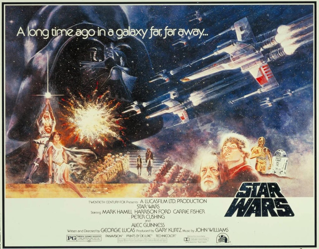 The film, Star Wars to which the artwork is based on, officially opened in U.S. theaters on May 25, 1977, becoming a massive, unexpected cultural and global phenomenon that’s launched one of the most iconic franchises in the history of cinema. Its original theatrical release, which began in a limited number of theaters, transformed filmmaking by ushering in the modern-day blockbuster.